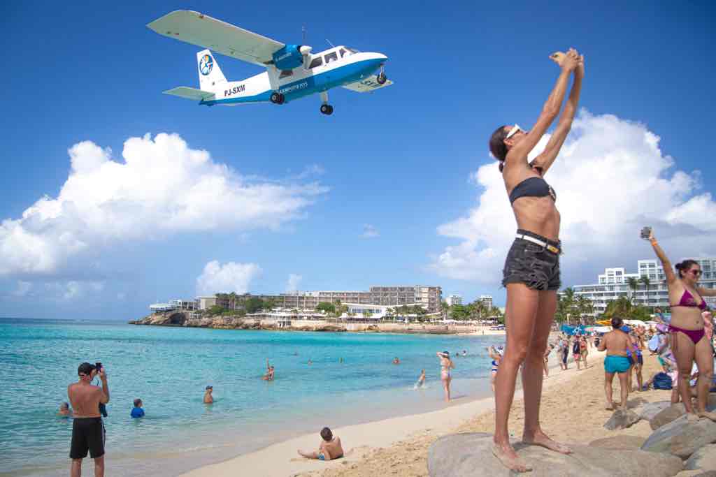 Ha van kép, ami St. Maartent világszerte ismertté tette, az a Maho Beach fölött néhány méterre elhúzó repülőgépek látványa. A Princess Juliana Nemzetközi Repülőtér rövid kifutópályája miatt a gépek extrém alacsonyan, gyakorlatilag a strand felett közelítik meg a leszállást, amit több bár és kilátópont tesz könnyen élvezhetővé a látogatók számára.