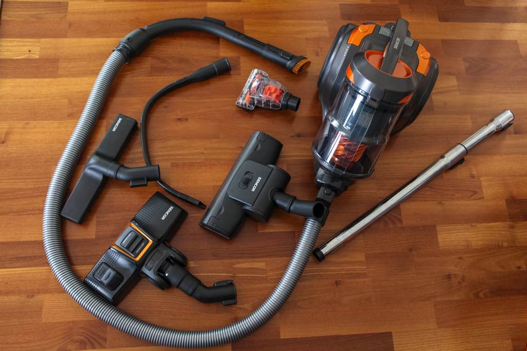 Több kefe, tisztítófej csatlakoztatható a Sencor SVC 1080BK-hoz. Az alapfelszereltséget egy univerzális, multifunkciós fej jelenti, ki- és visszahúzható keferésszel, állítható mafasságú gördülőfelülettel. Utóbbinak jelentősége a keménypadló-lágyabb szőnyegtípusok közti különbség kapcsán mérhető, hiszen ha túlzottan alacsony a fej állása, szőnyegek porszívózásánál bizonyára akadályokba fogunk ütközni – egyszerűen elakad a tisztítófej.